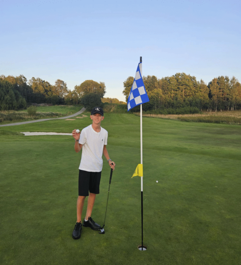 Hugo Sjöström gick fadderronda under onsdagskvällen. På hål 4 ställer han upp på orange tee med en hybridklubba. Några sekunder senare är sensationen ett faktum. Hole in one! Grattis Hugo,…